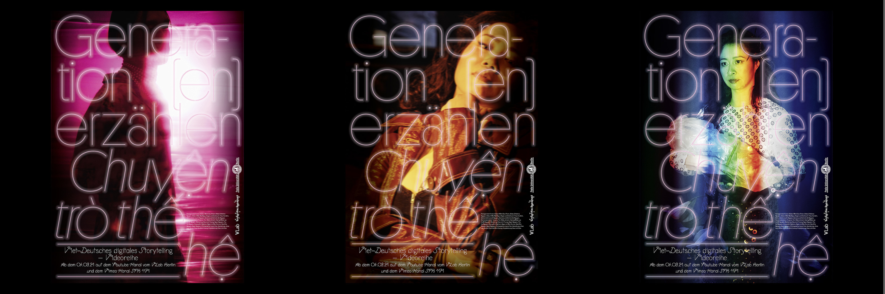Die Videoreihe „Generation (en) erzählen” spielt zwischen Zeiten und Orten. Durch die Verknüpfung von Fragmenten der Vergangenheit, Gegenwart und Zukunft wird das Diasporische erfahrbar gemacht. In den Plots, welche die Grenze zwischen Fiktion und Autobiographie verwischen – erzählen die Protagonisten*innen aus ihrer Perspektive und überliefern damit ein Stück Geschichte ihrer Generation und ihrer Communities. Es dreht sich dabei um Musik, Generationen, Liebe, Erinnerungen und (Nicht-) Zugehörigkeit. Die Videoreihe ist eine Auseinandersetzung mit vietnamesisch-diasporischer Kulturproduktion in Deutschland und verarbeitet Elemente der melodramatischen Performances der vietnamesisch-sprachigen Kultvarieté-Reihe „Paris by Night“. Ein weiteres Feature bilden die Audioaufzeichnungen der vietnamesisch-sprachigen Radiosendung „Stimme der Heimat“ (Tiếng Quê Hương, die im Deutschen Rundfunk Archiv geborgen wurden. Die wöchentliche Sendung wurde kurz nach dem Fall der Berliner Mauer übertragen, als sich die Entwicklungen insbesondere für die Vertragsarbeiter*innen überschlugen…